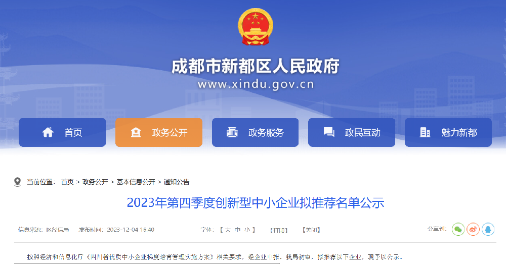 恭喜四川艾能捷科技有限公司入選2023年度四川省創新型中小企業公示名單! 近日,四川省經濟和信息化廳發布了公示名單,四川艾能捷科技有限公司等一批優秀的中小企業入選2023年度四川省創新型中小企業名單。這一榮譽對于四川艾能捷科技有限公司來說無疑是對其創新能力...